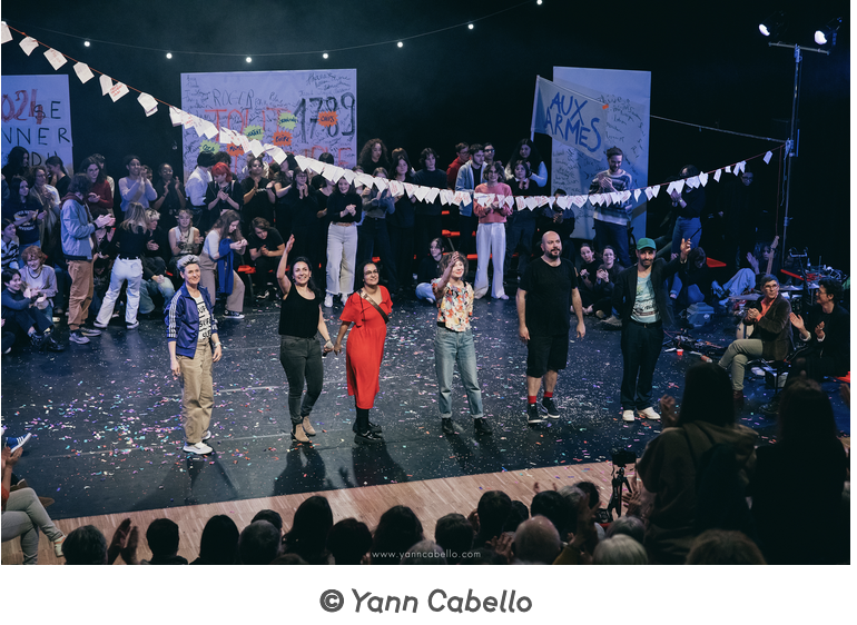 La seconde partie du spectacle était composée de 7 tentatives pour interroger ce que serait une révolution aujourd'hui : de Marie-Antoinette à Aurélien Barrault, plusieurs personnages ont traversé la scène et la salle avec une invitation sans cesse renouvelée au mouvement, à la danse, à la parole. Un moment de théâtre participatif qui aura enchanté les élèves.