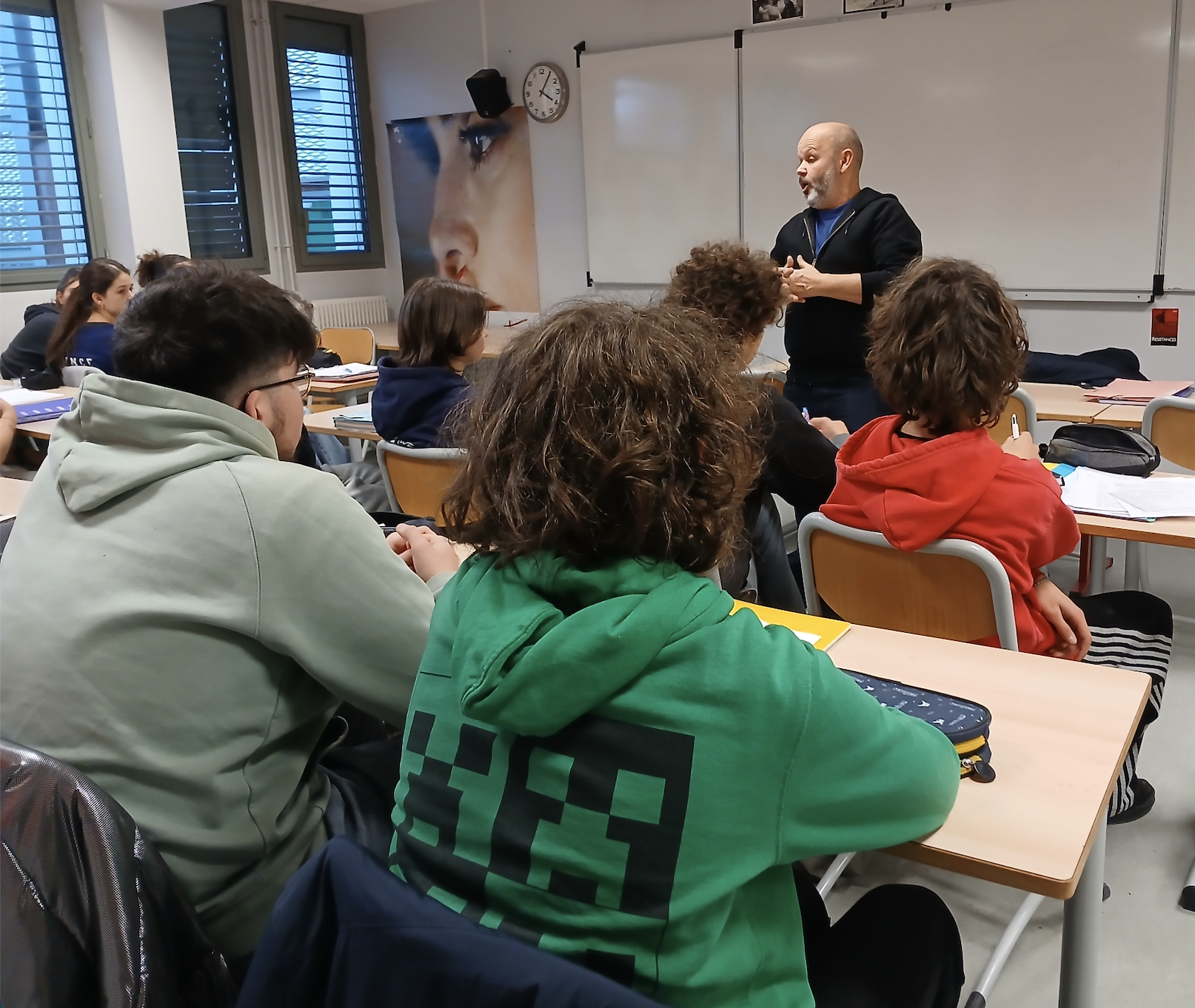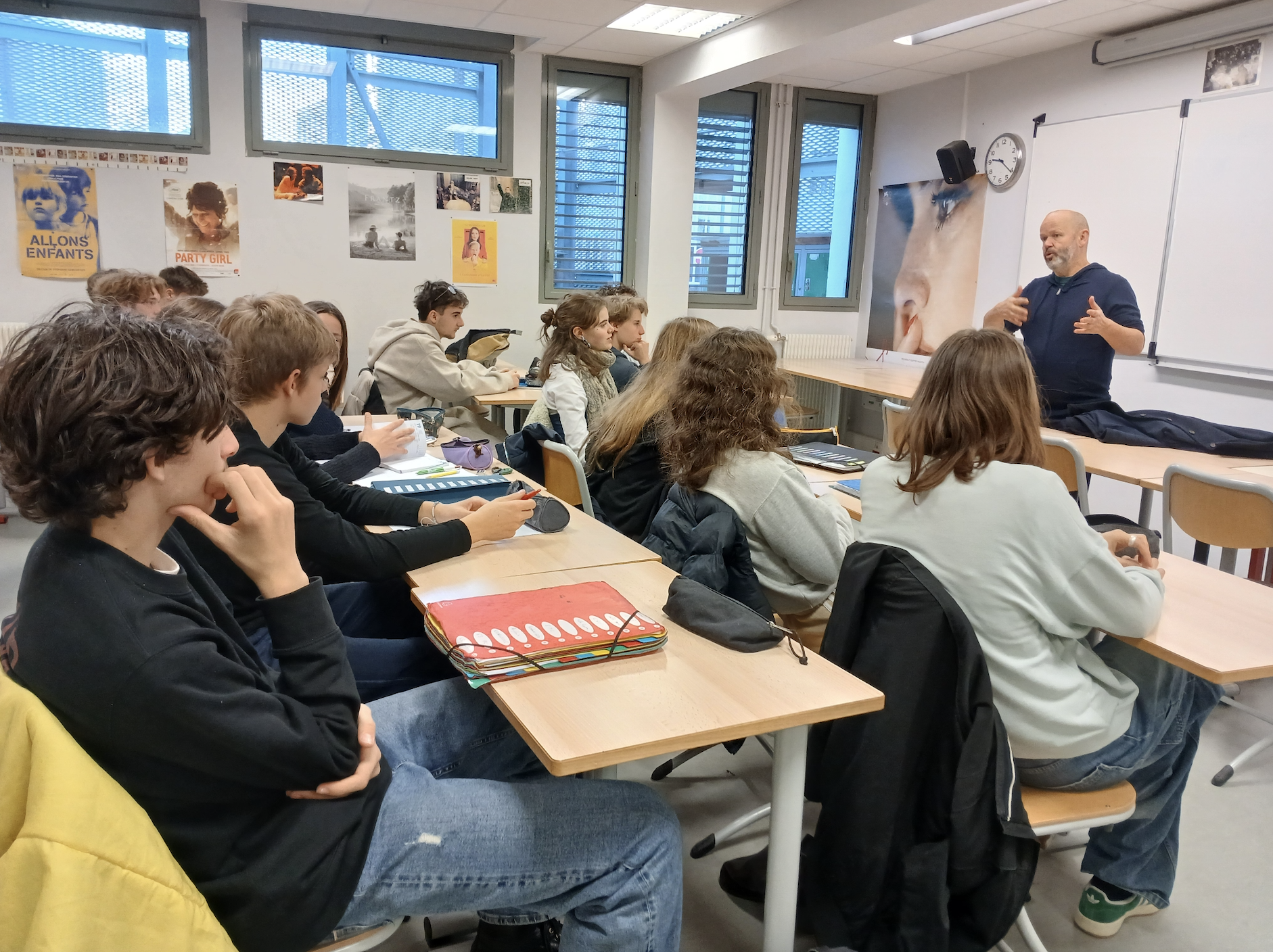Il a partagé aux élèves son parcours, émaillé de doutes et de rencontres. Il a répondu à toutes leurs questions : comment faire ses premiers films? à quel moment pense-t-on la musique? un scénariste se vit-il comme un écrivain? jusqu'où accompagne-t-il le film? comment est-il rétribué? ...